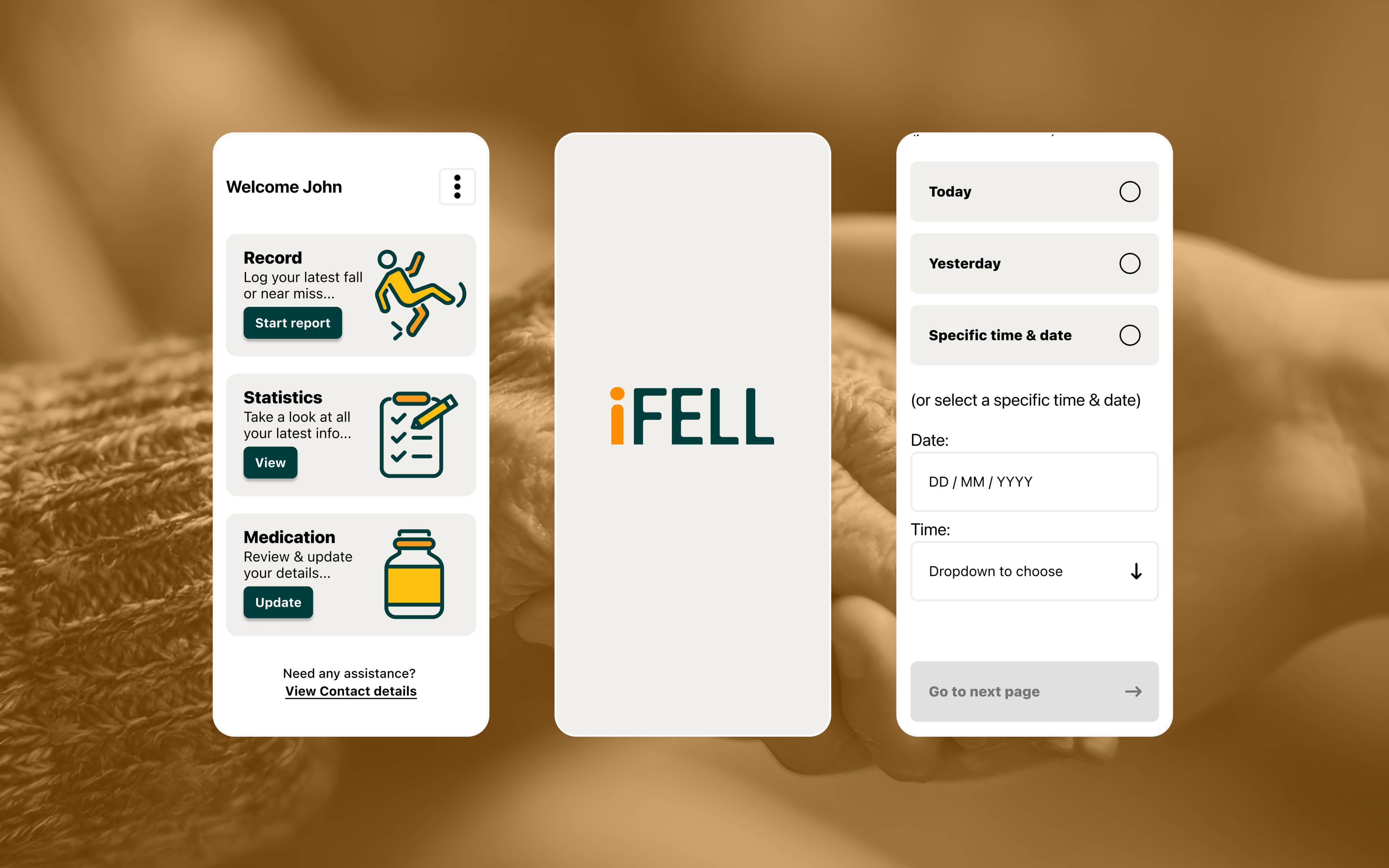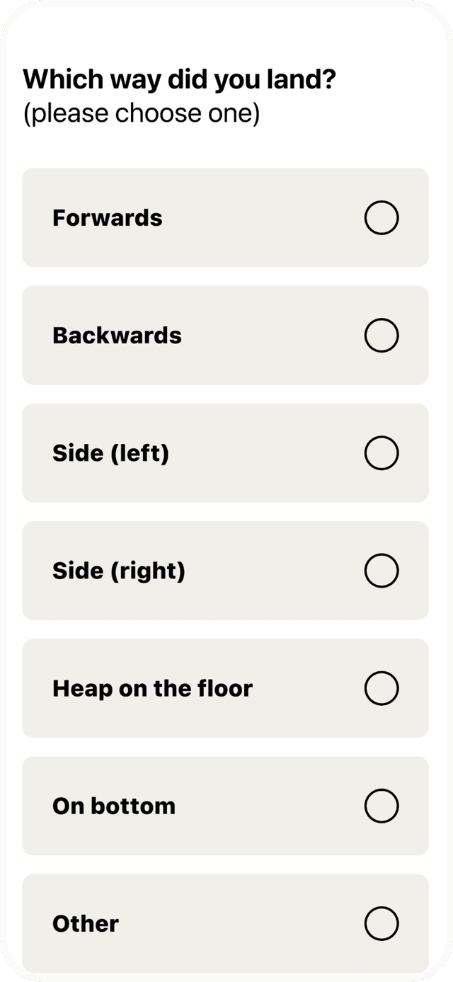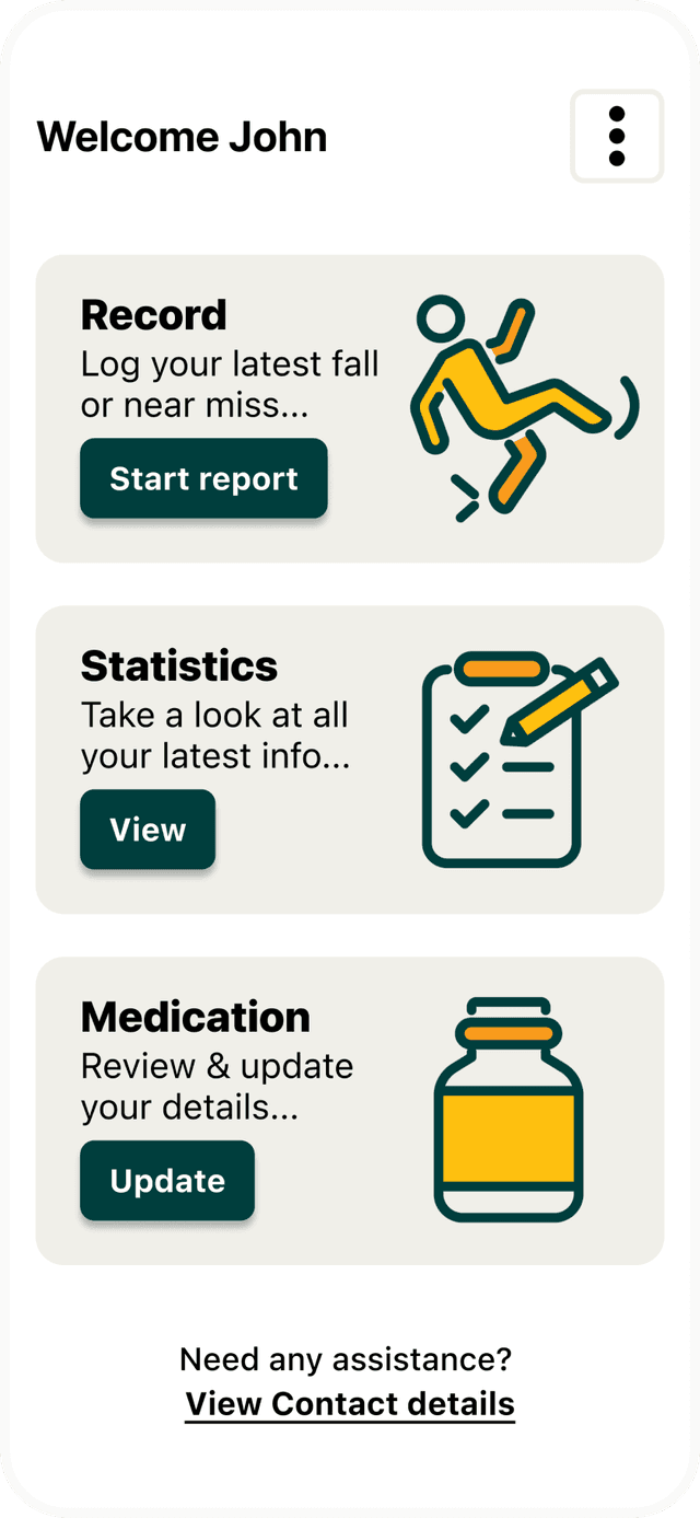 Working closely with Dr. Morris and her collaborators, we designed and developed the iFell mobile app from the ground up. The app allows users to log both falls and “near misses” through a simple, question-led flow. Over time, it builds up a rich picture of patterns, locations, causes, and outcomes — data that can be shared with clinicians, researchers, or support networks.