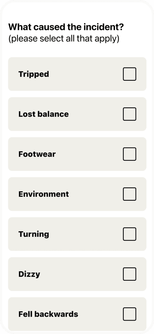 - Easy incident logging for Falls and Near Misses