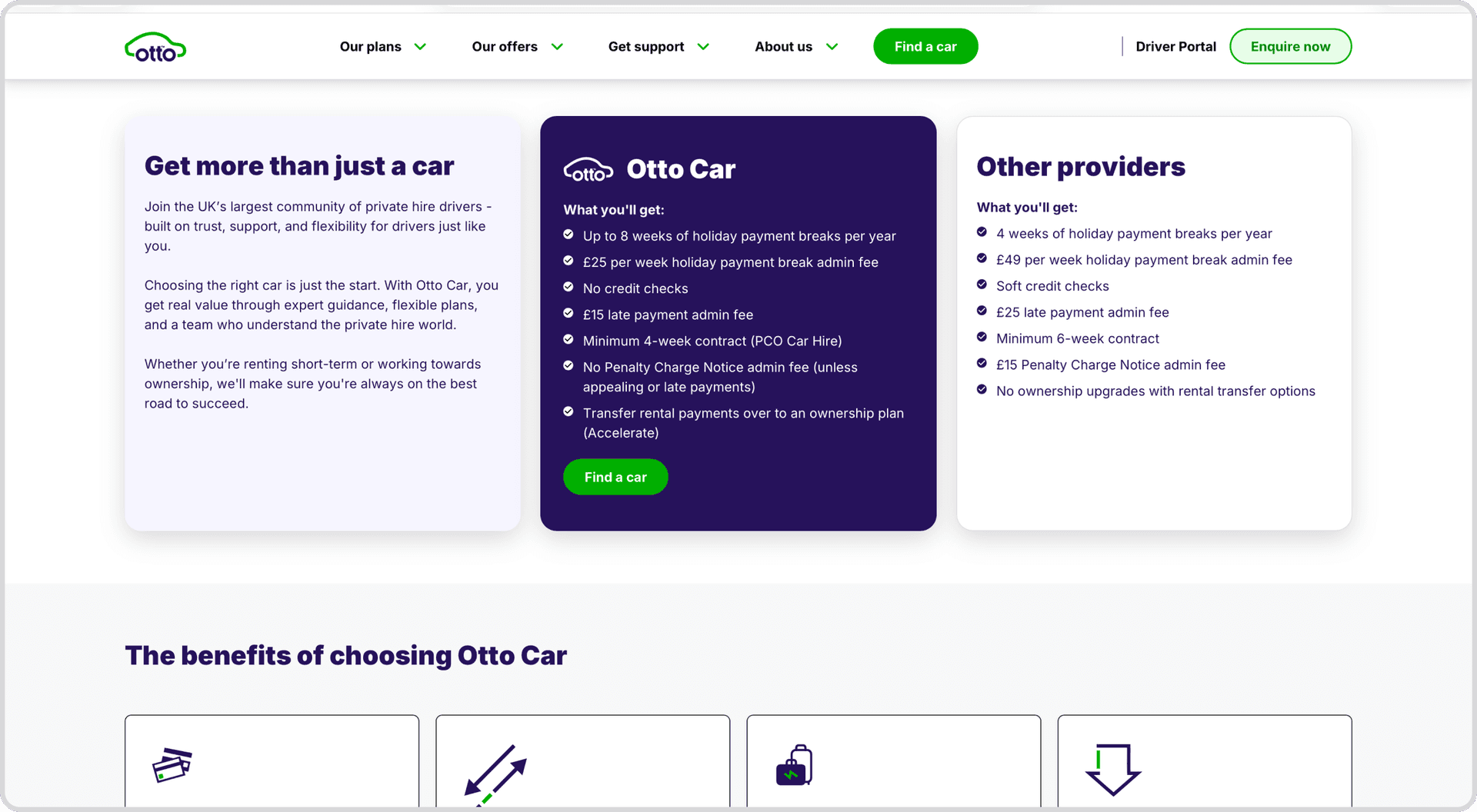 We worked with Otto Car to design a high-performance, mobile-first website experience tailored to PCO drivers. The new platform supports scalable onboarding, smart integrations, and improved lead conversion, all underpinned by a flexible design system ready for growth.